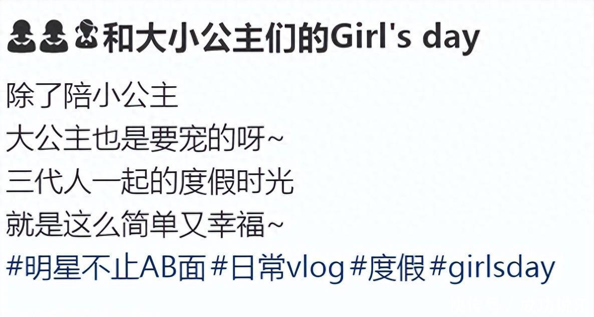 当然,这趟不只围着孩子转。颖儿特意陪妈妈做了SPA,一起看海、晒太阳,慢悠悠聊家常。如今她事业稳、家庭暖,既能给女儿满满陪伴,也能让父母享清福——这样的日子,踏实又闪亮,谁看了不心头一软?