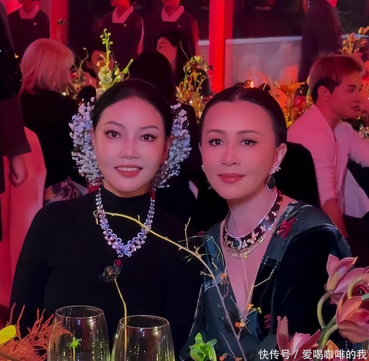 颜丙燕穿中式立领上衣配香槟色抹胸裙,上身繁复,下身简洁。合影站刘嘉玲右侧,整体协调但显上重下轻。活动全程珠宝借用制度严格,明星无购买义务,仅作展示。红毯总时长两小时,结束后珠宝清点归还,无丢失报告。