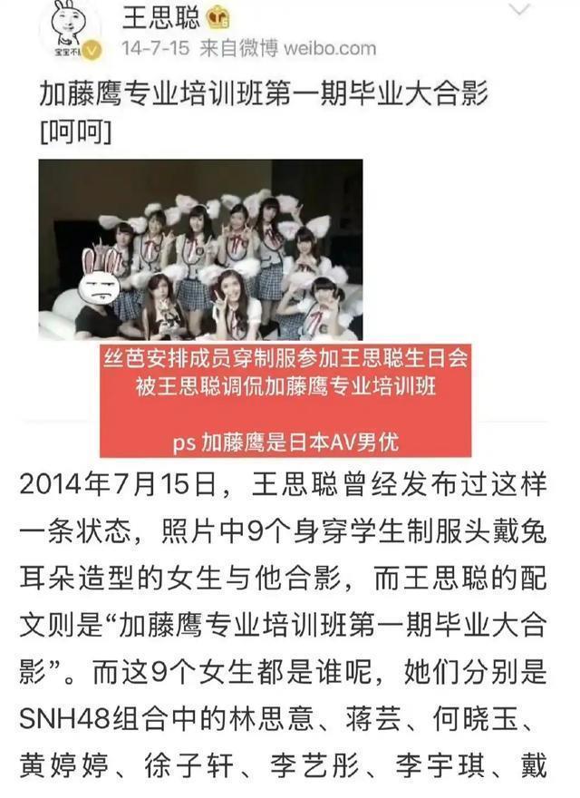 网友顺着线索深扒发现,十几年前王思聪的一场生日宴照片中,出现了多名丝芭传媒旗下女艺人的身影。照片里,这些女艺人身着性感短裙围绕在王思聪身边,使其成为全场焦点,王思聪则仰头大笑,状态十分放松。 更关键的是,爆料者提及,当时公司曾明确要求鞠婧祎到场作陪,却遭到其直接拒绝,这也成为后续她与公司关系紧张的伏笔之一。