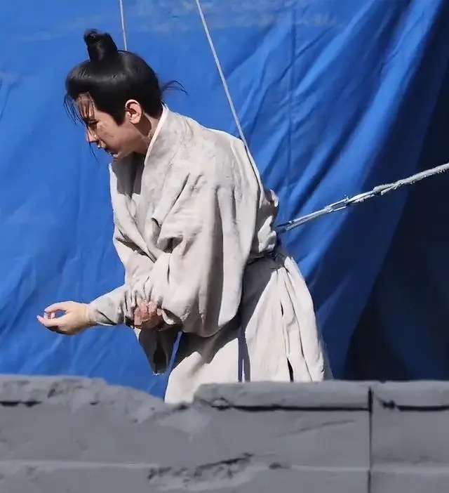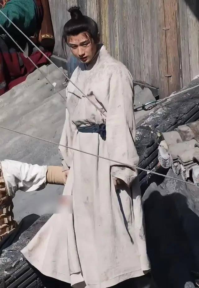 这已是他两天内第二次受伤。前一日拍摄同款戏份时,威亚配合不佳导致他手指擦伤、手腕撞屋檐,疼得直揉胳膊,在屋顶缓了许久才继续。