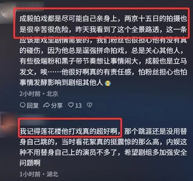 此次事件后,成毅微博评论区彻底改观,从前恶评变成对其敬业的肯定。从《青云志》林惊羽到《莲花楼》李莲花,再到现在的朱瞻基,他一直在用作品说话。