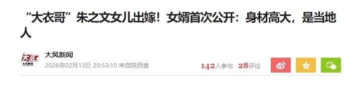 参考资料:大风新闻《“大衣哥”朱之文女儿出嫁!女婿首次公开:身材高大,是当地人》