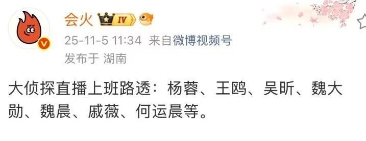 5. 更巧的是,第十一季的《大侦探》即将开启全新的“演唱会”主题企划。虽然正式录制尚未启动,但嘉宾们的现身瞬间点燃了全网热度,集体登上热搜榜单。
