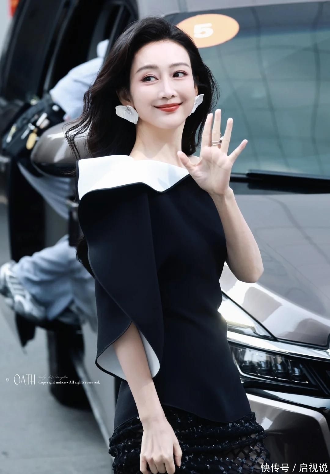 16. 当天她以一头慵懒黑色大卷亮相,发型随意却不失精致,搭配黑白拼接剪裁礼服,完美勾勒身形曲线,同时契合其冷艳干练的个人风格。